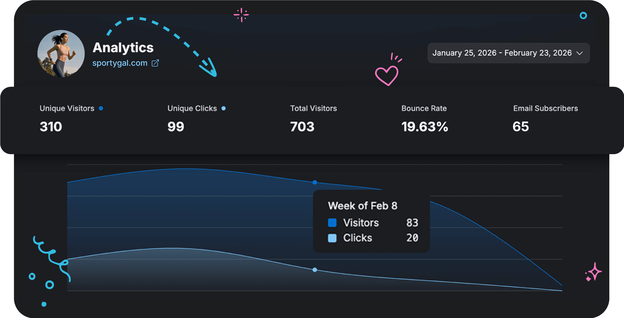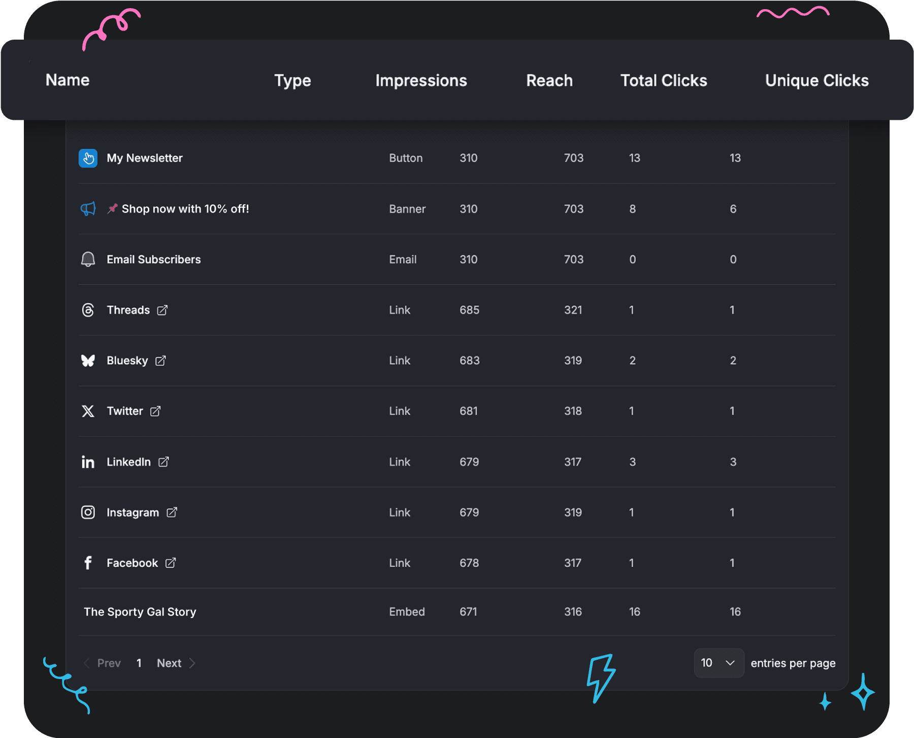 Yes. Analytics lets you measure impressions, reach, total clicks, and unique clicks for each link, button, banner, embed, or email subscription collection on your page.