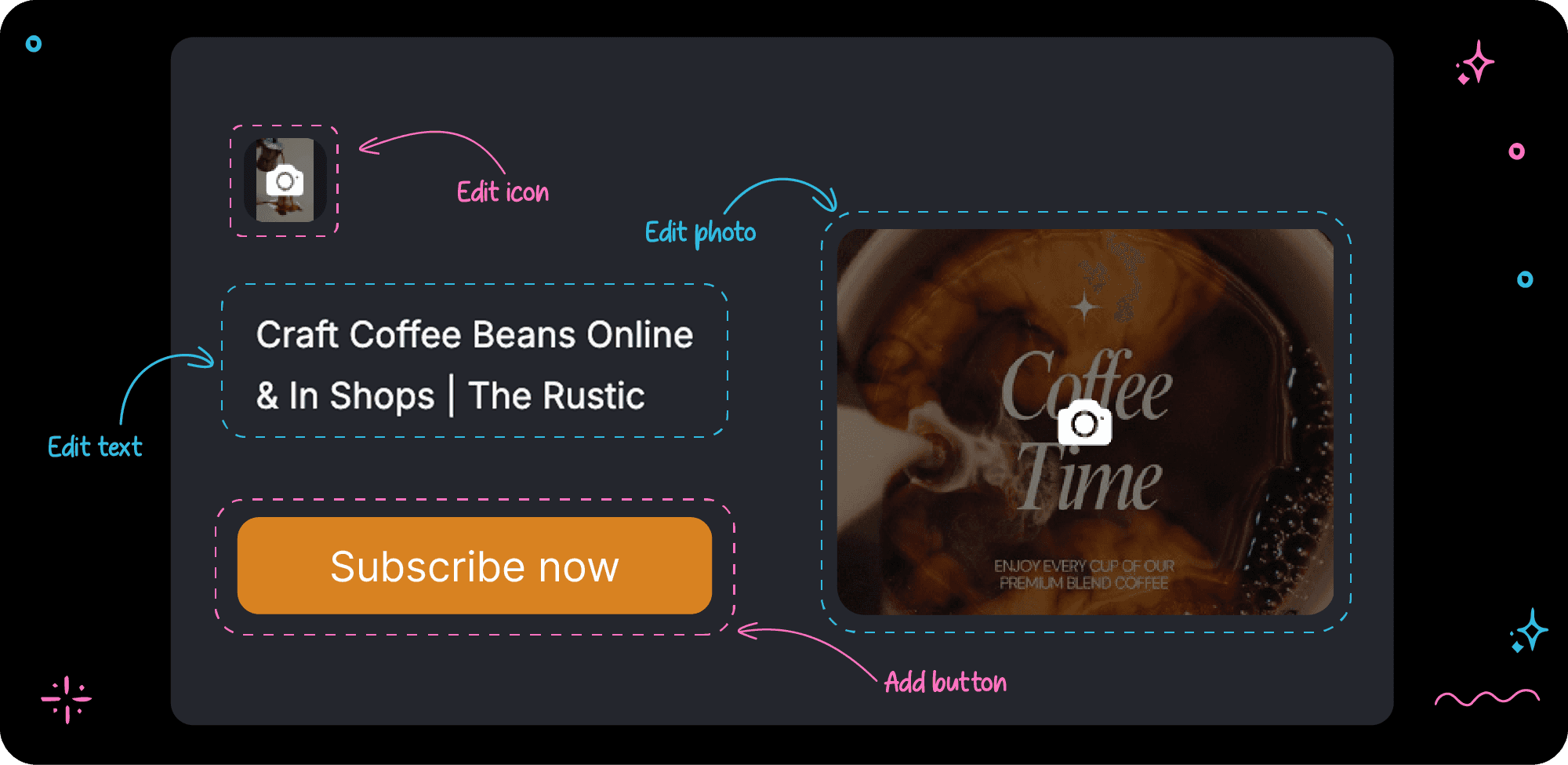 Keep cards small for a clean layout, or expand them with images, text, and calls