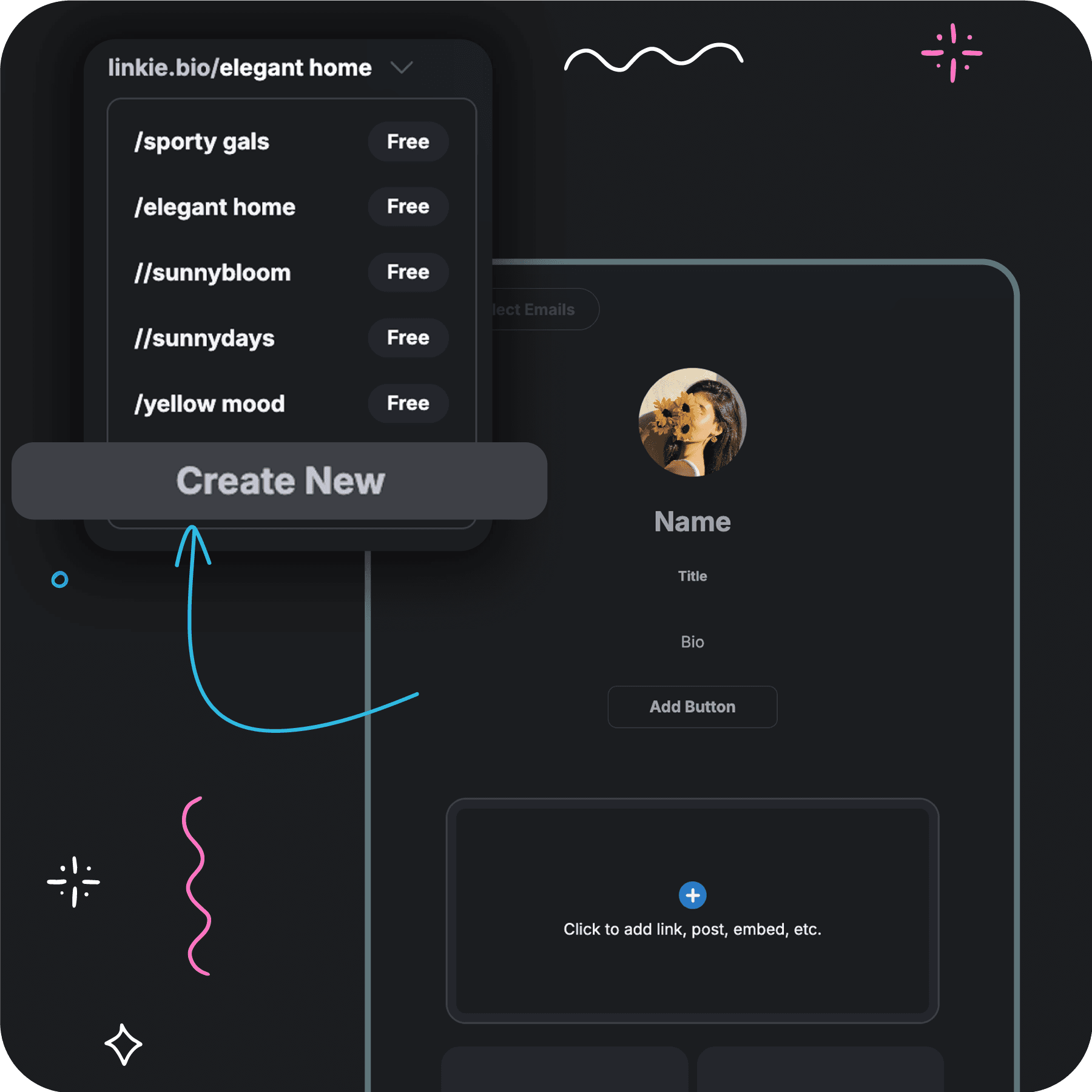 Create, switch, and manage all your Linkie profiles in one place. Perfect for handling multiple brands, clients, or projects.
