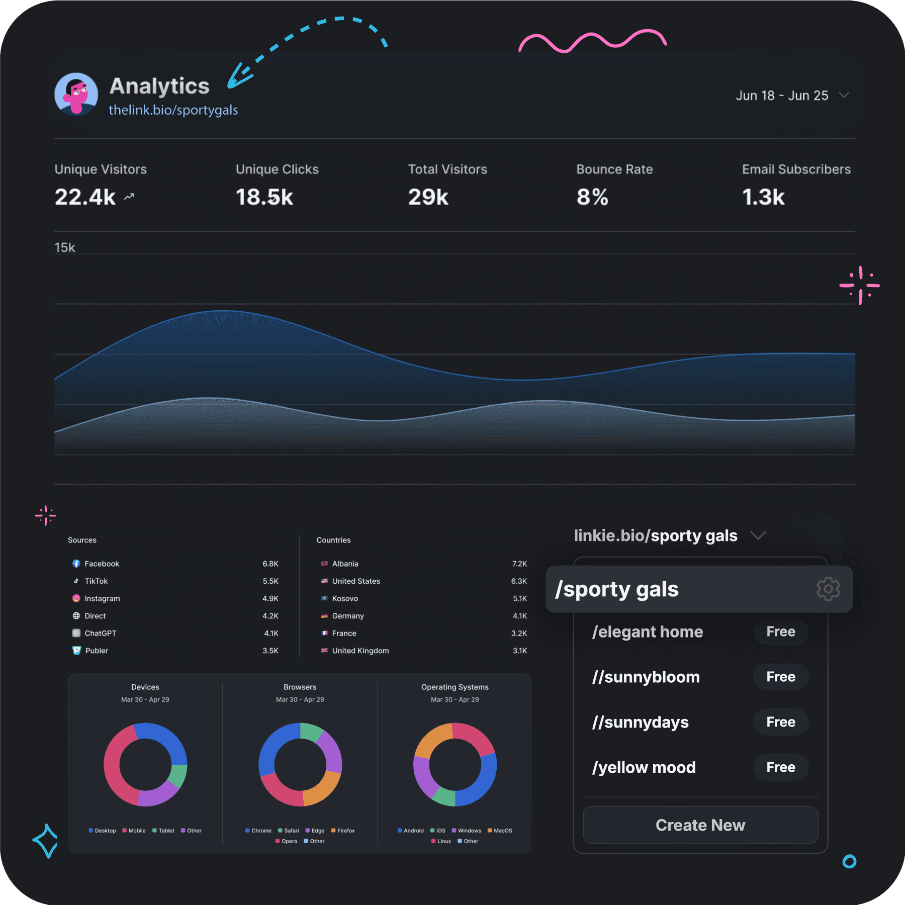 Yes. Every Linkie has its own analytics, and you can also get a clear overview of performance across all your Linkies from one dashboard.